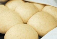 • لفّ العجينة على شكل رول، وصفّها داخلَ صينيةٍ مدهونةٍ بالقليل من الزيت، وإدخالها إلى فرنٍ محمّى مسبقاً على درجة حرارةٍ متوسّطة لما يقارب العشر دقائق حتى تتحمر.