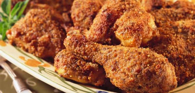- تصفية الأفخاذ من الماء، وغمسها بالطحين، والبيض، والبقسماط.