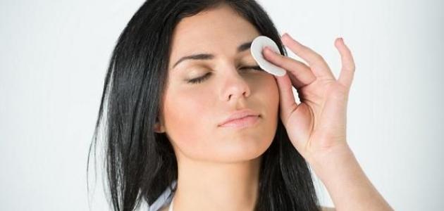 - مسح العين بلطف وهي مغلقة من الزاوية الداخلية إلى الزاوية الخارجية للعين، وذلك باستخدام كرات قطنية رطبة دافئة أو قطعة من القماش.