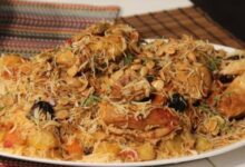 تقطيع البرتقال والليمون إلى أنصاف، وعصر العصائر فوق الديك في الصينية، ثمّ يتم وضع الخضروات المتبقية في قاع الصينية.