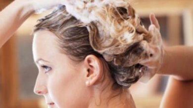 • نغسل الشعر جيداً بالماء، ونُدلك فورة الرأس للتخلص من آثار الحناء.