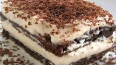 • نضيف الكريمة، والفانيليا على الحليب، ونُحرّك المكوّنات جيداً.