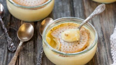 • نترك الخليط يبرد تماماً، ثمّ نضيف الزبادي والموز المهروس، ونخفق جميع المواد في الخلّاط حتى تتجانس المكونات.