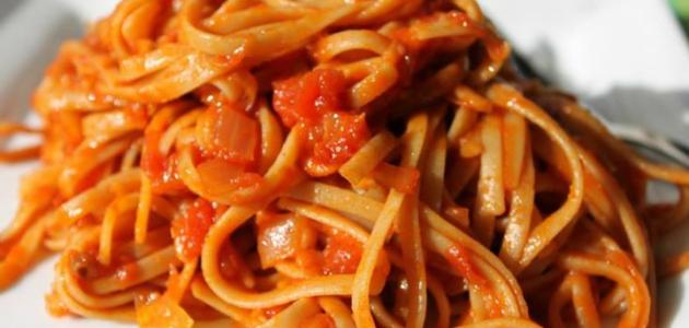 - تُسكب الصلصة على المعكرونة وتقلب لتندمج، ثم يُغطى ويوضع جانباً لخمس دقائق.