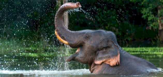 - يستطيع الفيل السباحة، ويستخدم خرطومه كأنبوب تنفس عند غطسه في المياه العميقة.