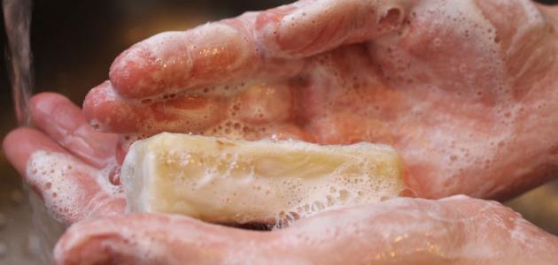 - بلّل الصابونة، وافركها بيديك للحصول على رغوة.