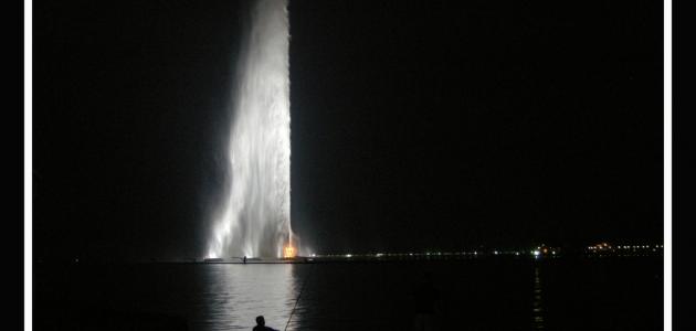 بدأ بناء هذه النافورة في عام 1980م، واستغرق تشييدها ثلاث سنوات حتّى عام 1983م، وبدأ عملها في عام 1985م، وهذه النافورة توجد في المياه المالحة للبحر الأحمر، حيث أنّ مياهها تتدفق لما يزيد عن إرتفاع 312 م ، ويمكن رؤيتها من كلّ أنحاء مدينة جدّة، في حين تصل سرعة الماء إلى 375 كلم في الساعة، أمّا كتلته فقد تتجاوز الثمانية عشر طنّاً. وخوفاّ من صدأ الأساسات وتآكلها من مياه البحر المالحة فإنّ المصممين أضافوا مضخات ومرشحات تمّر المياه بها قبل أن تصل للنافورة للحفاظ عليها من الصدأ. وتضاء بما يزيد عن خمسمئة ضوء وإنارة في الليل، وهذه الإضاءة مصممة لتتحمّل آلاف الأطنان من الماء، وكشافات النافورة مثبتة على جزر خاصّة.