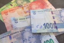 - فئةُ (5,000) شلن: وهي تميلُ إلى اللونِ الأرجوانيِّ، وتشتمِلُ على صورةِ وحيدِ القرنِ الأسودِ.