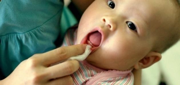 - بكاء الطفل عند تناول الأطعمة الصلبة أو ملامسة شيء ما للثته.