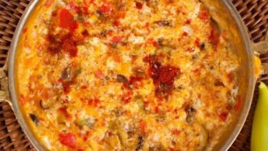 • نترك المزيج على النار لمدة خمس دقائق مع التحريك من وقتٍ لآخر حتى تستوي المكوّنات.