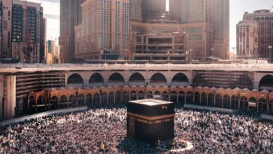 كان النبي -صلى الله عليه وسلم- يأتي القبائل في منى ويدعوهم إلى الدين، وخلفه أبو لهب يكذبه ويشتمه.[٧]