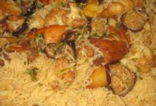 - أربع كؤوس من أرز الحبة الطويلة، المنقوع والمصفّى.