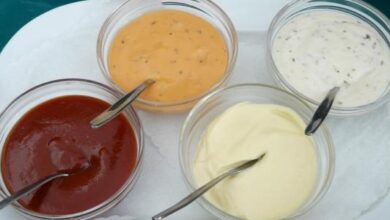 - نضع الصلصة في طبق ونُزيّنها بالبصل الأخضر المُقطّع.