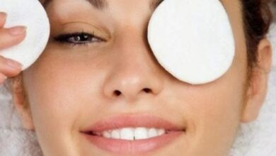 - تُترك كرات القطن تحت العينين مدة 15 دقيقة.