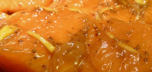 • تُرتب قطع الفيليه بشكل أنيقفي طبق تقديم، ويُسكب عليها صوص الزنجبيل مع الليمون، وتكون بذلك جاهزة للتقديم.