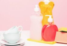 • سائل غسيل الأطباق:يُعد سائل غسل الأطباق من مواد التنظيف الأساسية في المنزل، وهُنالك العديد من الماركات التجارية المتوفرة في الأسواق، حيثُ إنّها تُساعد على إزالة الشُحوم وتلميع الأطباق بشكلٍ مثالي، وتعطي رائِحةً عَطِرةً ومُنعشة، وهي أيضاً تمنح اليدين ملمساً ناعماً بعد الاستخدام.[٢]