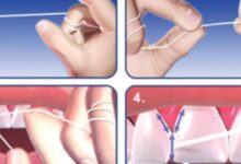• استخدام الخيط لتنظيف الفراغات ما بين الأسنان.