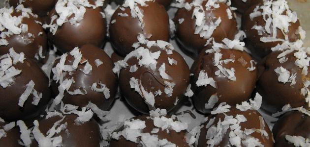 - نشكل العجينة إلى كريات متوسطة الحجم ثم ندحرجها في جوز الهند.