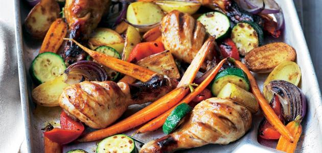 - وضع الطّبق داخل الفرن مدّة ساعة تقريباً حتّى ينضج الدّجاج والخضار.