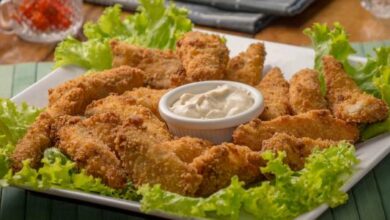 • قطعة من فيليه السمك المقطع إلى قطع كبيرة الحجم.