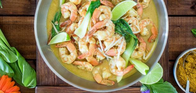 • نقْع الجمبري بالزّبادي والبهارات الهندية والفلفل الحرّيف مدةَ ثلاث ساعاتٍ على الأقل.