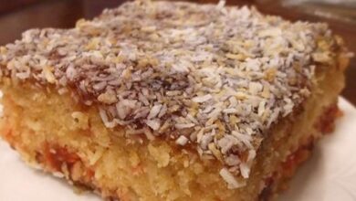 - تجهيز صينية قوالب مستطيلة الشكل للكيك ثمّ دهنها بالسمنة، ورشّها بالطحين ثمّ وضعها جانباً.