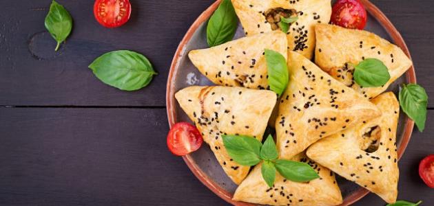 • فرد العجينة لتصبح بشكل دائرة متوسطة الحجم ووضع ملعقة كبيرة من الحشو بوسطها وغلاقها بشكل مثلث ووضعها متباعدة عن بعضها بالصينية وتغطيتها وتركها حتى ترتاح لمدة خمسة عشر دقيقة.
