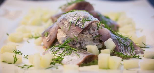 - ↑ “Basic Report: 15040, Fish, herring, Atlantic, cooked, dry heat”, ndb.nal.usda.gov, Retrieved 26-5-2019. Edited.