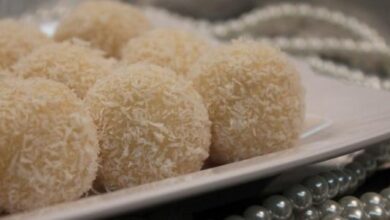 • ملعقتان كبيرتان من الفستق الحلبي وجوز الهند للتزيين ويمكن إضافة البُندق او الكاشو -حسب الرغبة-.