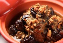 إضافة البطاطس ومرق الخضار ورفع الحرارة قليلاً حتى يغلي المرق، ثم خفضها مرةً أخرى، ثم تغطية القدر وتركه 45 دقيقةً حتى تنضج البطاطس.