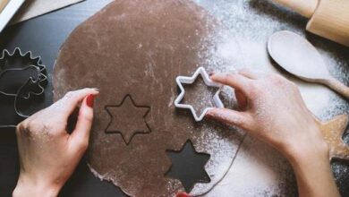• تجهيز صينية للخبز مبطنة بورق الزبدة.