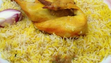 • إضافة خليط الزعفران ووضع قطع الدجاج على وجه الأرز وتغطية القدر وتركه على نار هادئة لمدة ثلاثين دقيقة حتى نضوج الأرز.