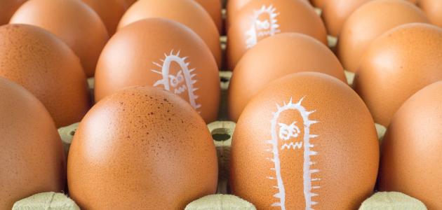 - السلمونيلا: (الاسم العلمي: Salmonella)، وتوجد بشكلٍ رئيسيّ في منتجات الدواجن غير المطبوخة جيداً؛ مثل الدجاج، والبيض، والديك الرومي.
