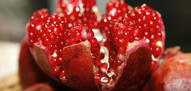 • الرمان: إذ يحتوي على مضاداتِ أكسدة، ومادة النايتريت التي تُساعد على توسيع الأوعية الدموية.