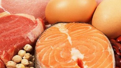 - سمك السلمون، والجمبري: إذ يحتوي كلّ 85 غرامًا من سمك السلمون على 17 غرامًا من البروتين، أما الجمبري فيحتوي على 18 غرامًا منه.
