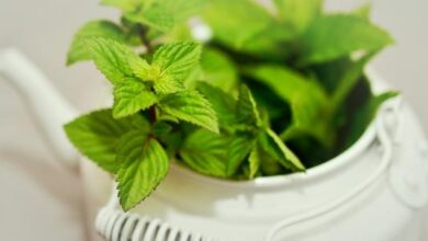 • تحضير شاي الأعشاب بواسطة أوراق النعنع طويل الأوراق.