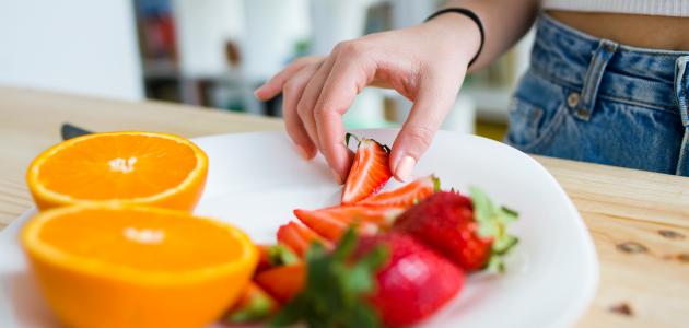 - التحكم بالكميات المتناولة: إنّ كميّات الطعام المتناولة من الأطعمة يُعدّ مهمّاً بقدر أهميّة نوع الطعام المتناول، فملئ الصحن بكمياتٍ كبيرةٍ من الطعام وتناوله بسرعة حتى الشور بالامتلاء قد يؤدي إلى استهلاك سعراتٍ حراريّة أكبر من الكميّات التي يحتاجها الجسم، ويُنصح للتقليل من كميّات الطعام المتناولة باستخدام أطباق صغيرة الحجم، وتناول حصصٍ أكبر من الأطعمة القليلة بالسعرات الحرارية، والغنية بالعناصر الغذائية، كالفواكه والخضراوات، وتقليل حجم الحصص المتناولة من الأطعمة مرتفعة السعرات والملح، كالأطعمة المعالجة، ويجدر الذكر أنّ الوجبات المقدمة في المطاعم عادةً ما تكون أكبر من الكمية التي يحتاجها الشخص.[١٠]
