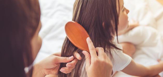 - يُوزّع الزّيت على فروة الرأس، ويُترك على الأقل مدة عشر دقائق.