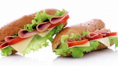 - تقطيع الخبز إلى نصفين ووضع الخس فوقه، البصل، الطماطم ، الكاتشب والمايونيز.