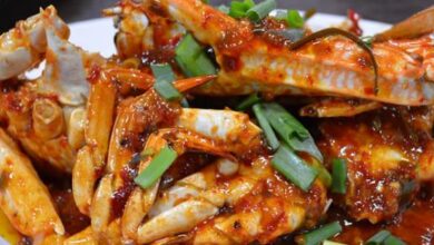 - خلط مكونات خليط الباذنجان جميعها ووضعها تحت السمك أثناء تقديمه.