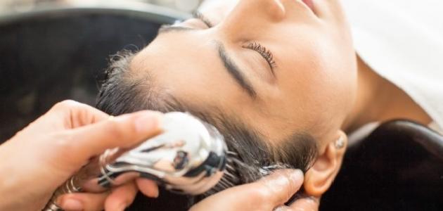 - يُطبق الشامبو على الشعر من الجذور، وحتى الأطراف، ثم يُغسل الشعر بالماء.