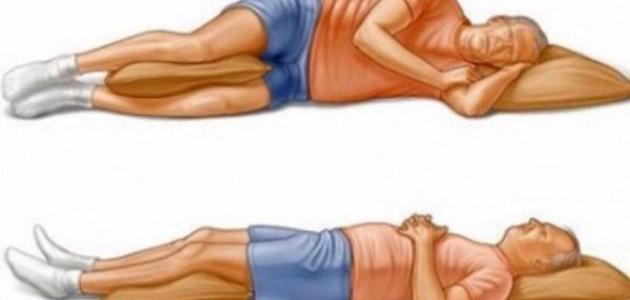 • النوم على الظهر في وضع مائل: تُعدّ هذه الوضعية مفيدة لمن يعانون من آلام أسفل الظهر، وخاصة الأشخاص الذين يعانون من انزلاق الفقار البرزخي.