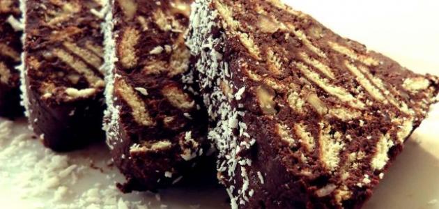 - نقطع البسكويت إلى قطع صغيرة أو متوسطة الحجم حسب الرغبة.