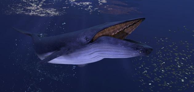 تتميز الحيتان الزرقاء بامتلاكها لصفائح متشكلة من مادة تُشبه مادة أظافر الإنسان تُسمى بالين (بالإنجليزية: Baleen)، تُساعدها هذه الصفائح المُتصلة بفكيّ الحوت على فتح الفم بشكل واسع جدًا، لتتمكن من ابتلاع كميات هائلة من الماء، الذي تتخلص منه بمساعدة لسانها الضخم الذي يُجبر الماء على الخروج، ليترك خلفه الآلاف من الكريل، الذي تتغذى عليه الحيتان الزرقاء.