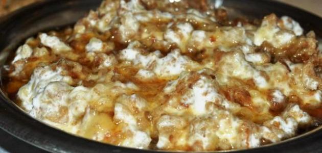 - نضيف كوب الماء الذي أذبنا الطحينة فيه ونقلبه مع اللحمة، ونترك المنزلة على النار حتى تصبح المكوّنات كثيفة وتنضج اللحمة.