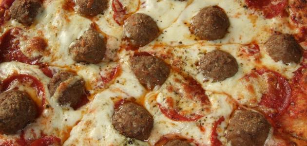 - دهن الخبز بصلصة البيتزا ثمّ وضع كرات اللحم بالخبزة ووضع شرائح الفلفل الحلو، والفلفل الحار وتغطية الشريحة بالجبنة.