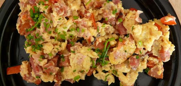 ثلاثة أكواب من الفول المطبوخ. فص مفروم من الثوم. حبتان من البندورة مفرومتان إلى مكعبات. بصلة صغيرة مقطعة إلى شرائح. حبة من الفلفل الأخضر المفروم إلى مكعبات. أربع بيضات. الملح، والفلفل الأسود -حسب الرغبة-. رشّة من الكمون. حفنة من الكزبرة المفرومة.