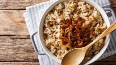 - غسل الأرز لعدة مرات، ونقعه بالماء مدة نصف ساعة.