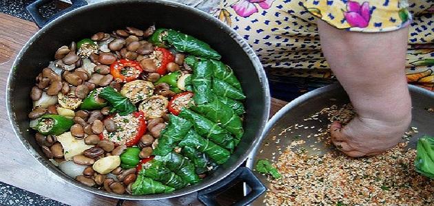 - حشوّ الكوسا، الباذنجان، البصل، الفليفلة الملونة ولفّ ورق العنب، مع ترك مسافة قليلة عند الحافة بدون أرز لترك مجالٍ لانتفاخ حبات الأرز وتضاعف حجمها أثناء الطهي.