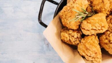 • نقل قطع الدجاج على ورق المطبخ؛ للتخلص من الزيت الزائد.